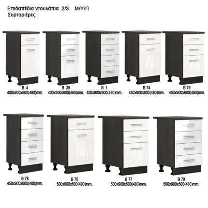 Κωδικός: 07-00-076 Εύκολη συναρμολόγηση! Δημιουργήστε συνδυασμούς  μόνοι σας επιλέγοντας τα ντουλάπια που σας ταιριάζουν, η μας στέλνετε τα μέτρα  και φωτογραφίες με email και σας ετοιμάζουμε το σχέδιο με τα ντουλάπια που σας ταιριάζουν. Μπορούμε επίσης να σας κατευθύνουμαι μέσω web-κάμερας στην συναρμολόγηση. Χρώμα: Άσπρο Γυαλιστερό Μπορεί να συνδυαστεί με μαύρο γυαλιστερό Επιλογή διαστάσεων και ντουλαπιών Χερούλια: Μεταλλικά Μεντεσέδες ντουλαπιών soft-close (με φρένο) Για περισσότερες πληροφορίες επικοινωνήστε μαζί μας